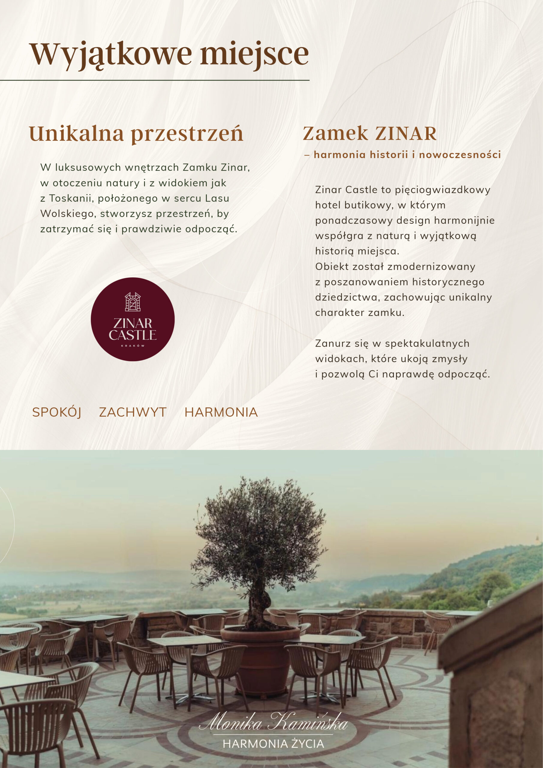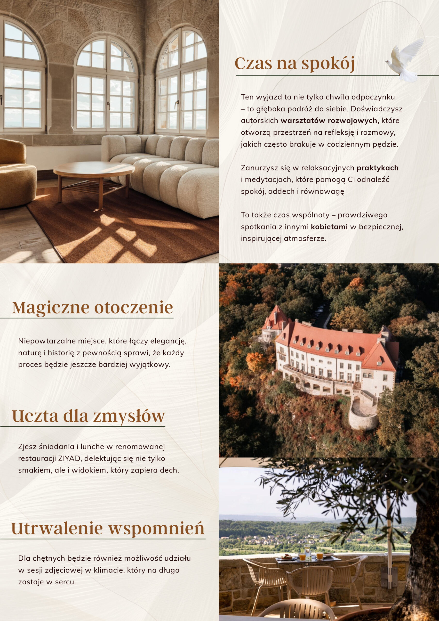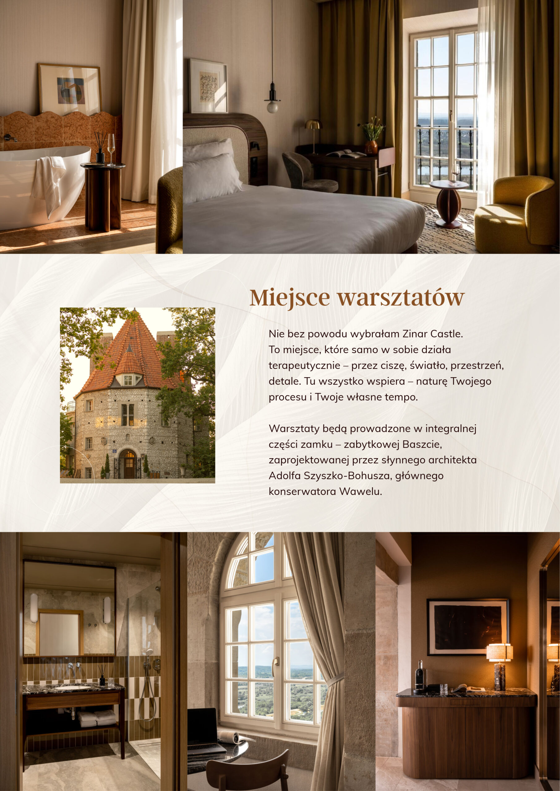 Nieprzypadkowo wybrałam Zinar Castle. To miejsce ma w sobie coś terapeutycznego – ciszę, światło, detale, które wspierają naturalne tempo Twojej przemiany.
